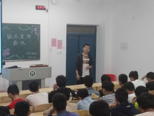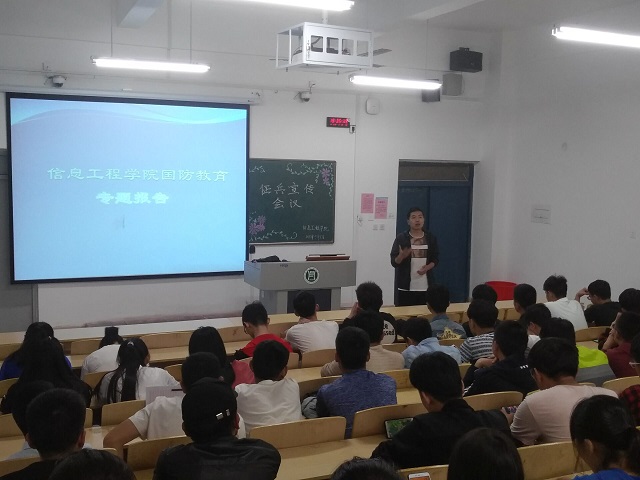 为增进同学们对国防教育的认识和了解,并鼓励同学们去军营中锻炼自己,磨练意志。信息工程学院于5月8日晚上7点30分在二教305召开了征兵宣传会,会议由马原老师主持。
