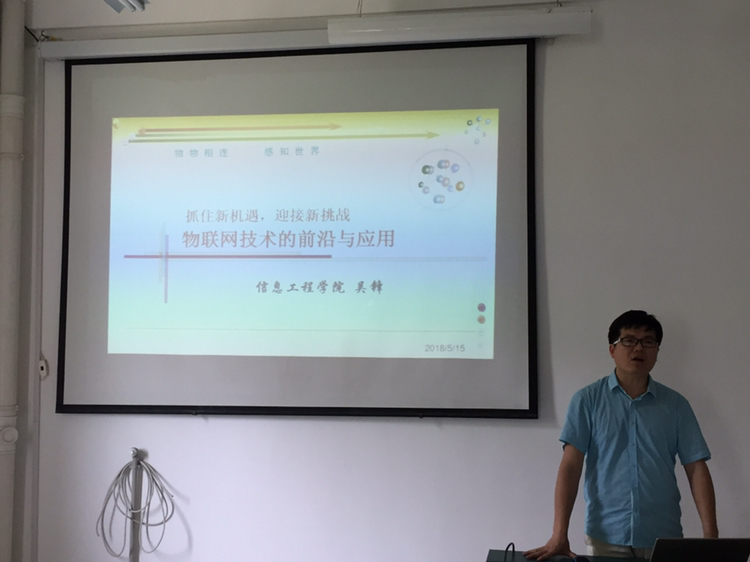 5月15日,信息工程学院吴锋老师在1A203教室为物联网工程2017级学生作了一场题为“物联网技术的前沿和应用”的知识讲座。