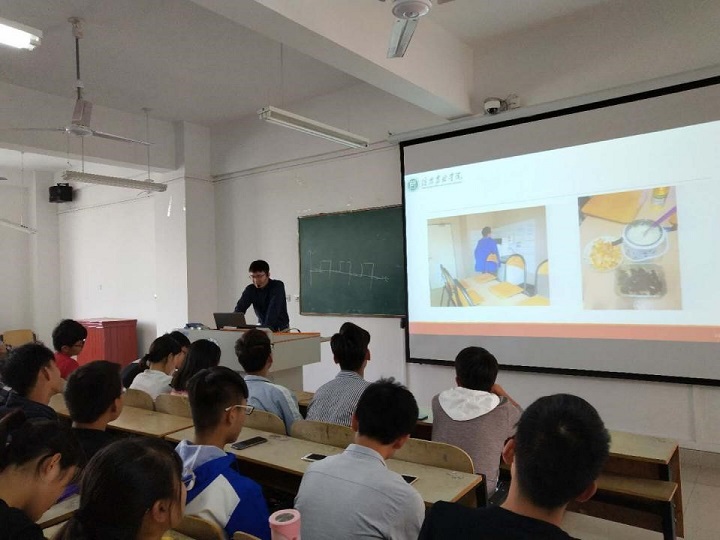 下午邀请了新进海归教师王思霖为同学们分享了在法国留学的经历,以及在企业工作的经历,开拓了同学们的视野。