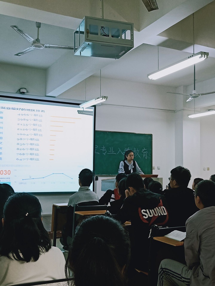 上午主要进行专业教育,潘赟老师对网络工程专业的专业内涵进行了深度剖析,理论联系实际,对专业定义,应用前沿,未来就业方向等方面进行了深入阐释。随后,潘老师就专业人才培养方案、专业课程开设等内容进行了细致讲解。最后,潘老师勉励大家,要及早确立学习目标,马上行动起来,去实现自己的人生理想。
