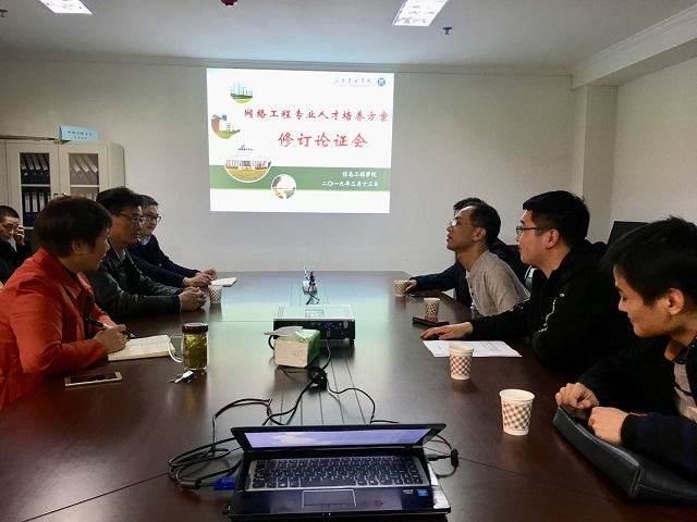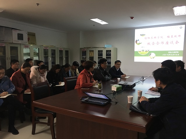 2019年3月13日下午,信息工程学院在921办公室召开网路工程专业人才培养方案修订调研暨校企合作交流研讨会。福建榕基软件股份有限公司工程部总监李瑜、信阳榕基信息技术有限公司总经理胡卫国等一行四人、副校长赵一鹏、院长商信华、两室主任及部分专业教师参会。