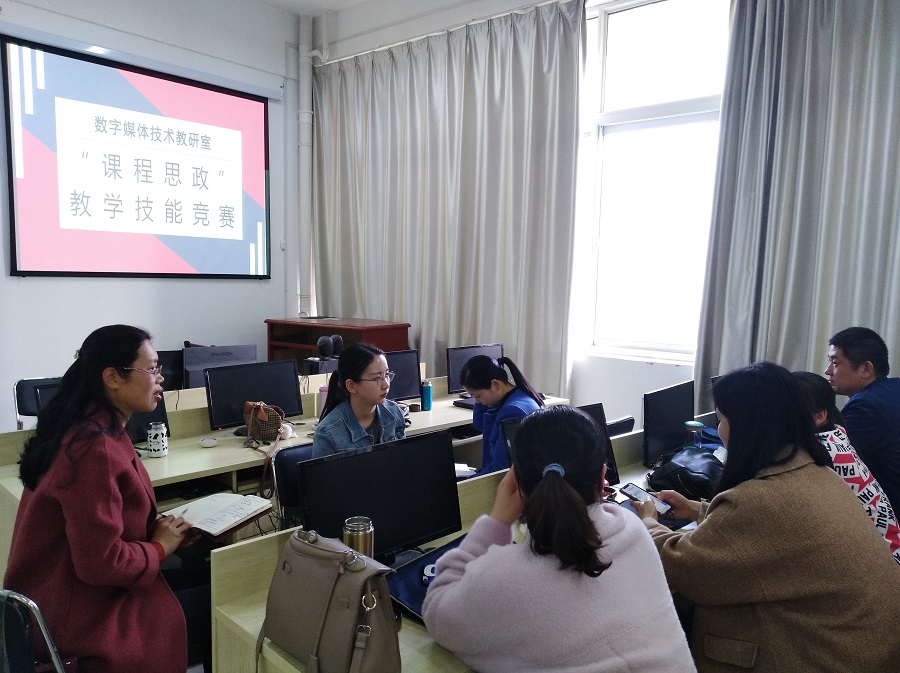为了提升数字媒体技术教研室教师在专业课程中融入“社会主义核心价值观”的教学技巧,加强专业课教师实施“课程思政”的主动性和积极性,引导专业教师课程思政教学基本功训练,推动数字媒体技术教学团队建设,4月11日下午,数字媒体技术教研室在科技楼1A407举行了“课程思政”教学技能竞赛。教研室共9名教师参加比赛。