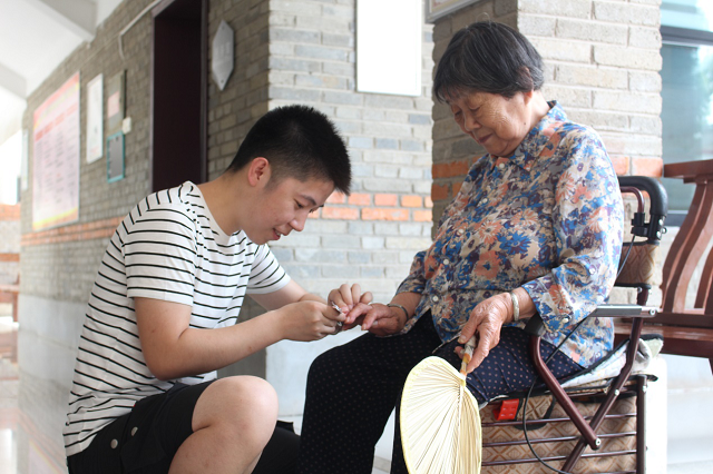 上午9点整,学生党员们在养老服务中心门口集合,一同携带爱心水果以及贺卡探望老人。在敬老院院长简要介绍老人的一些基本情况之后,学生党员们就与老人一起进入老人们的房间,帮忙老人们整理房间,在帮助老人的同时也与老人们倾心交谈,在学生党员们的热切关怀下,老人对学生党员有说有笑。老人们给学生党员们讲述自己曾经的经历,讲述现在社会的美好,学生党员们也将自己在外面读书的情况与老人们进行了分享。同时,学生党员们也将自己精心准备的祝福语写在贺卡上,赠与老人,并且将贺卡的内容念给老人们听,老人们非常喜欢并且露出了灿烂的微笑。最后在养老院院长带领下,学生党员们与老人们合影留念,本次活动顺利结束。