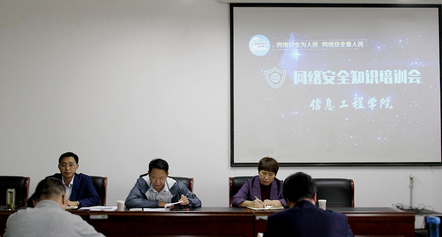 9月17日下午,正值2019年国家网络安全宣传周之际,按照学校《关于开展网络安全宣传教育活动的通知》要求,信息工程学院在1A307举办了网络安全知识培训会。学院全体教师参加培训会。会上,大家集中学习了《网络安全法》等网络安全相关法律知识,深刻学习领会了习近平总书记论网络安全十大金句精神,充分认识到网络安全是国家安全的重要组成部分。大家应该牢固树立“没有网络安全,就没有国家安全”的意识,自觉维护网络安全,努力成为网络安全的参与者、守护者、贡献者。