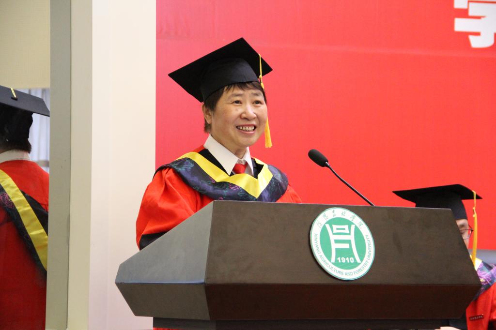 信息工程学院院长商信华在学位授予仪式上讲话。她首先向顺利完成学业的毕业生表示祝贺,向为同学们的成长倾注心血、付出辛劳的全体教职工致以崇高的敬意。作为师长,她向全体毕业生提出三点希望和嘱托:一是要转变观念,积极就业。要抓住求职择业的黄金期、关键期,先就业、再择业。要从上班第一天起,把小事当作大事干,简单的工作极致做,只要坚韧不拔、百折不挠,成功就一定在前方等你。二是要怀揣梦想,行稳致远。要学会思考、善于分析、正确抉择,树立正确的世界观、人生观、价值观,用积极的心态去面对困难。三是要不畏艰险,勇担重任。要不负新时代、新使命,以梦为马、不负韶华,以学长董平伟、孙春昱为榜样,让青春之花在党和人民最需要的地方绽放。