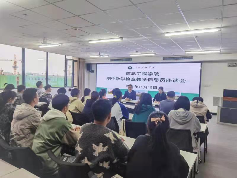 2021年11月15日,信息工程学院在双创618召开2021年秋冬学期期中教学检查学生座谈会,副院长何勇、专业教师罗丹及23名教学信息员参会。座谈会由副院长何勇主持。