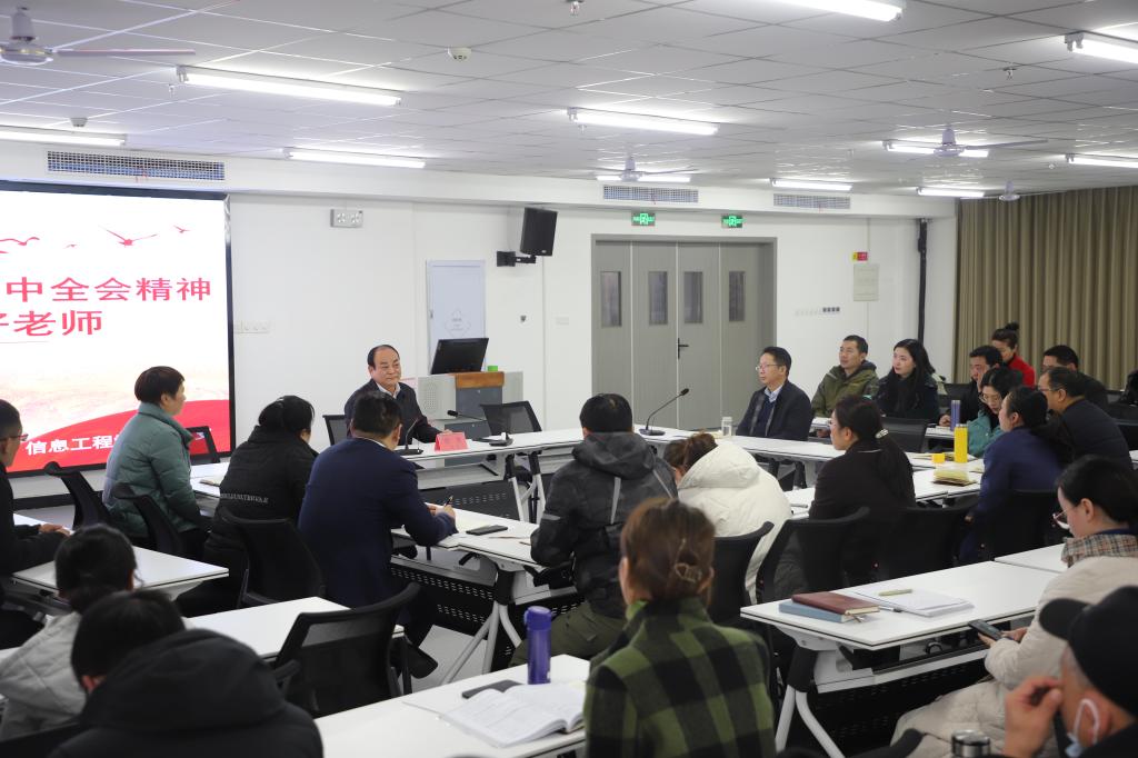 为扎实推动党的十九届六中全会精神落地落实,12月7日下午,校长邢勇到信息工程学院作专题报告,以《深入学习贯彻党的十九届六中全会精神做党和人民满意的好老师》为题,宣讲党的十九届六中全会精神。学院班子成员、全体教职工参加会议,会议由院党总支书记梁其宇主持。