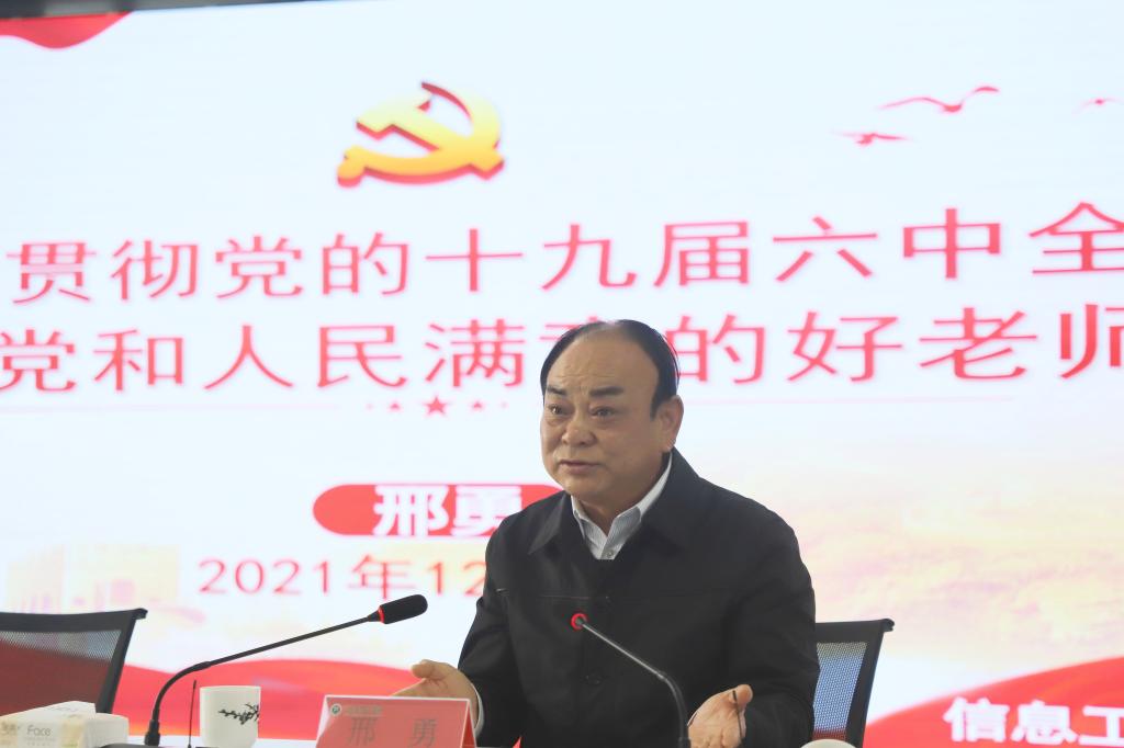 邢勇指出,要把学习宣传贯彻中共十九届六中全会精神作为当前和今后一个时期的重要政治任务,全体师生都要进行全面深入的学习。要准确理解全会精神的核心要义,深刻把握“一个牢记”的根本问题,“两个确立”的决定性意义,“三次飞跃”的理论成果,“四个时期”的伟大成就,“五个方面”的历史意义,自觉做党的路线方针政策的维护者、践行者。