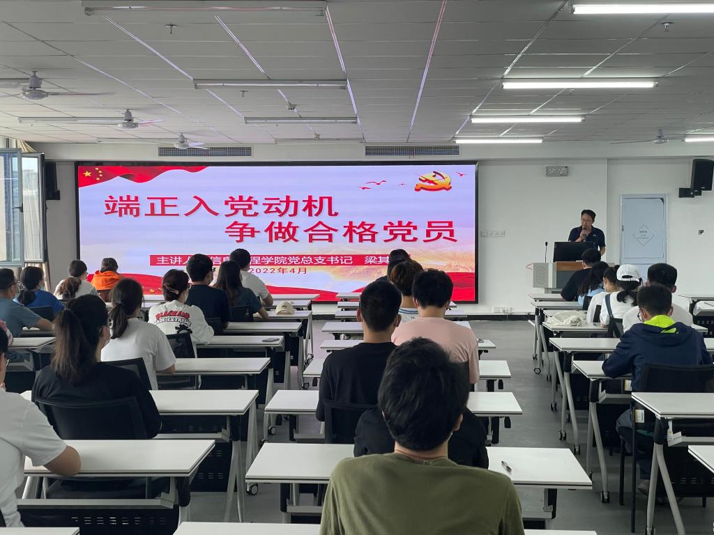 为进一步加强入党积极分子队伍教育和管理,4月25日下午,信息工程学院党总支书记梁其宇在双创中心618会议室,以“端正入党动机,争做合格党员”为题,为学院入党积极分子上主题党课。