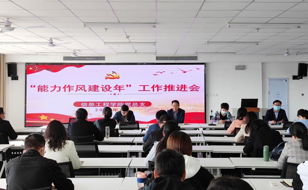 4月19日下午,信息工程学院在双创中心618会议室召开“能力作风建设年”工作推进会,院领导班子成员、科级以上干部、党支部书记、专兼职辅导员参加会议。会议由院党总支书记梁其宇主持。