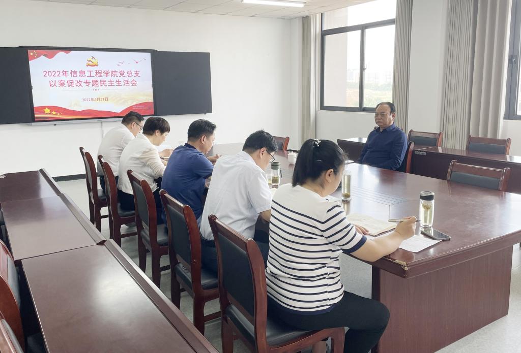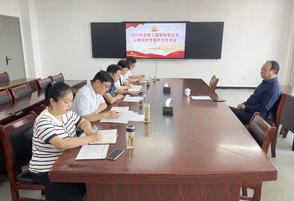 5月31日上午,信息工程学院党总支在双创中心615会议室召开郑州“7·20”特大暴雨灾害追责问责案件以案促改专题民主生活会。会议由院党总支书记梁其宇主持,班子成员商信华、朱猛、何勇、潘赟参会。校长邢勇到会指导工作。
