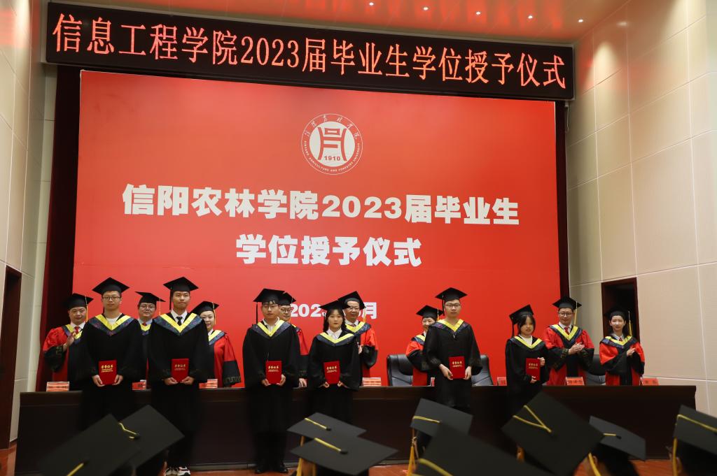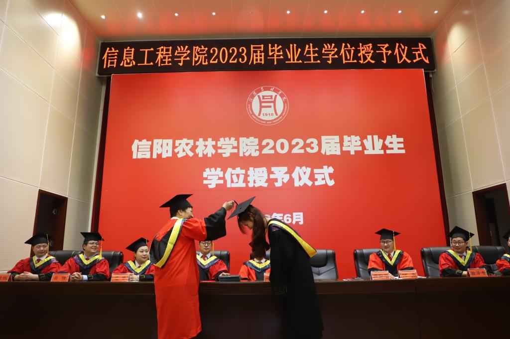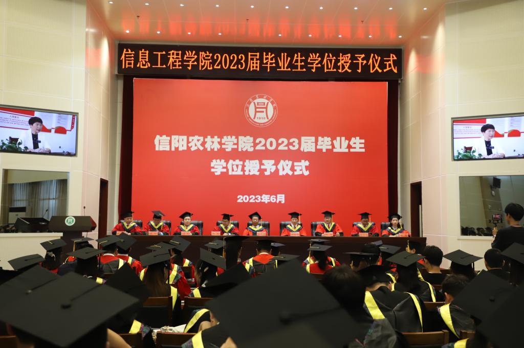 6月6日下午,信息工程学院在图书馆六楼报告厅举行2023届毕业生学位授予仪式。学院领导班子、学院学位评定分委员会委员,导师代表及2023届毕业生参加学位授予仪式。仪式由信息工程学院副院长何勇主持。