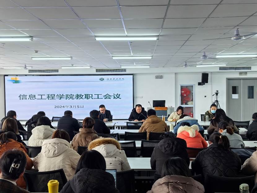 3月5日下午,信息工程学院在双创618召开全体教职工会议,安排部署学院新学期工作,明确未来一段时间的工作目标和主要任务。学院领导班子成员和全体教职工参会,会议由院党总支书记栗磊主持。