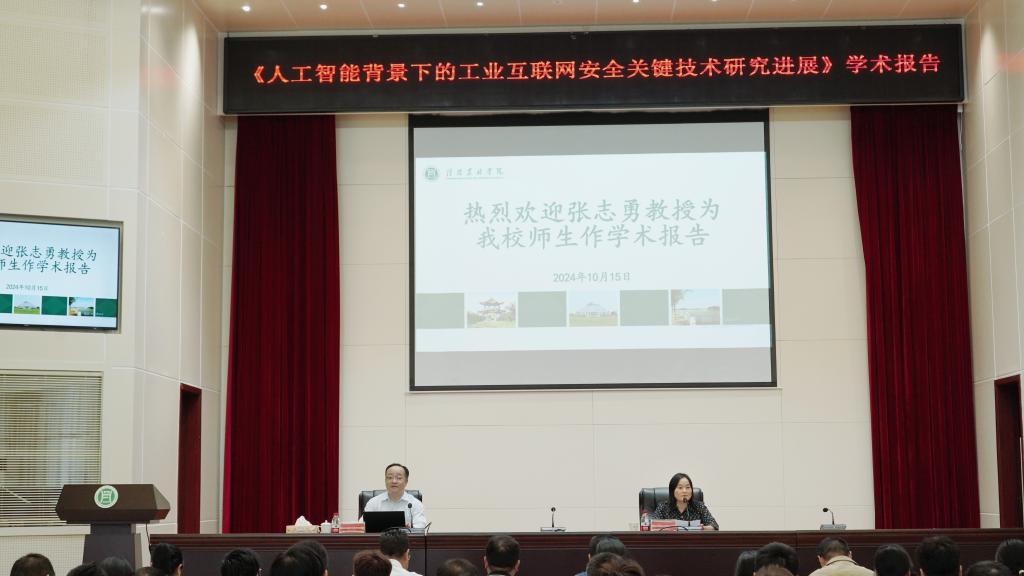 10月15日下午,河南科技大学信息工程学院院长张志勇教授应邀在图书馆六楼报告厅作了题为“人工智能背景下的工业互联网安全关键技术研究进展”的学术报告。信息化建设与管理中心全体教师、学院师生代表共计240余人参会。报告会由学院院长赵喜玲主持。