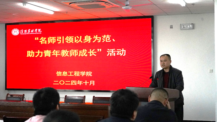 为贯彻落实党的二十大、二十届三中全会精神,深入学习习近平总书记关于教育的重要论述,落实立德树人根本任务,进一步加强青年教师培养和师德师风建设,10月29日下午,信息工程学院在双创703举办了“名师引领以身为范助力青年教师成长”活动。