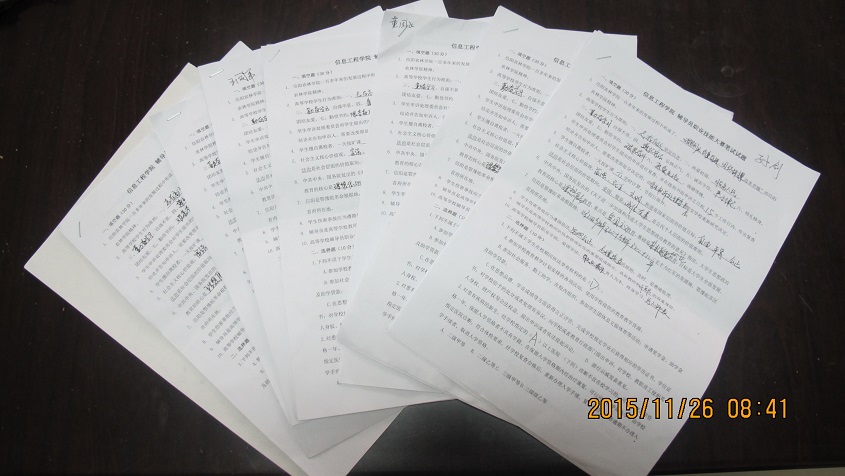 11月17日,信息工程学院学工组对全体辅导员进行基础知识测试,内容主要包括马克思主义理论、思想政治教育专业知识、党团和班级建设、学业指导、日常事务管理、网络思想政治教育、职业生涯规划与就业指导、心理健康教育、危机事件应对等相关工作领域的理论和知识,大学生思想政治教育相关法律法规和重要文件等。笔试采取闭卷考试形式。(信息工程学院)