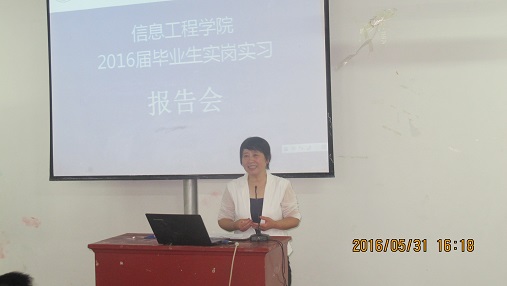 2016年5月31日,信息工程学院在二教204举行2016届毕业实习经验交流大会,2016届毕业生、2014级专科生及学院全体教师参加会议。会议由副院长杜永强主持。
