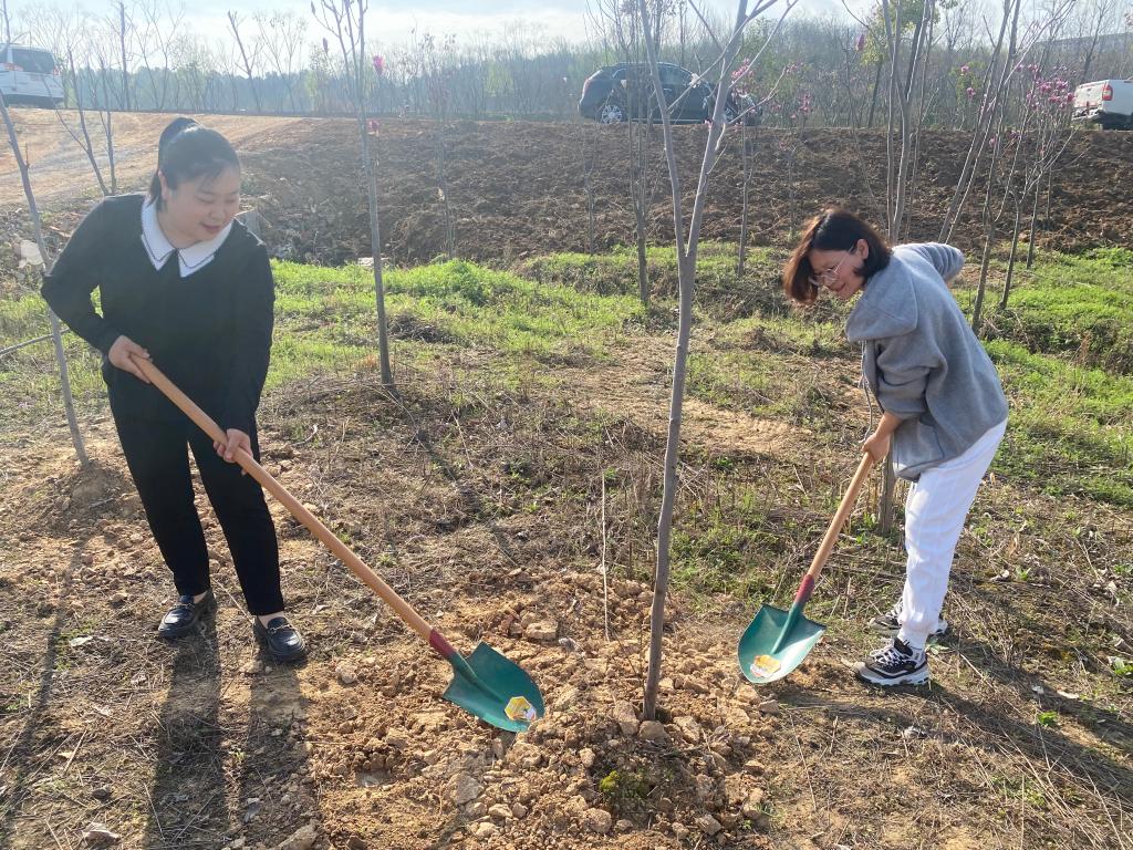 暖阳当空照,植树正当时。学院女老师们前往羊山新区北湖管理区开展赏春植树活动。女教工们欣赏北湖美景的同时,也分工协作、相互配合,搬运树苗、挥锹挖坑、栽种浇水,呈现出快乐祥和的劳动景象。活动最后,分工会也为此次参加活动的女职工发放了礼品,传递了三八节的祝福。