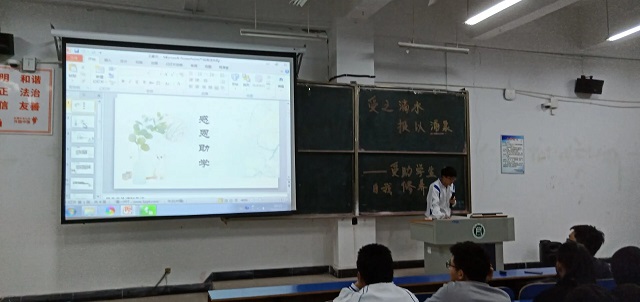 本次宣讲会分别由各年级优秀贫困生代表围绕“学生党员的个人成长”、“贫困生的学习与生活”、“学生干部的自我修养”以及“大一新生如何利用资助规划大学生活”四个方面进行了主题宣讲。各位优秀贫困学生代表与同学们分享了自己的学习与生活经验,以及如何利用资助提高学习成绩、增强脱贫内生动力。同时,各位学生代表均表示,作为贫困生,要正确看待和使用助学金,接受资助的同时要学会感恩回馈,树立和培养社会服务意识,以优异的成绩和出色的能力服务社会、回报祖国。