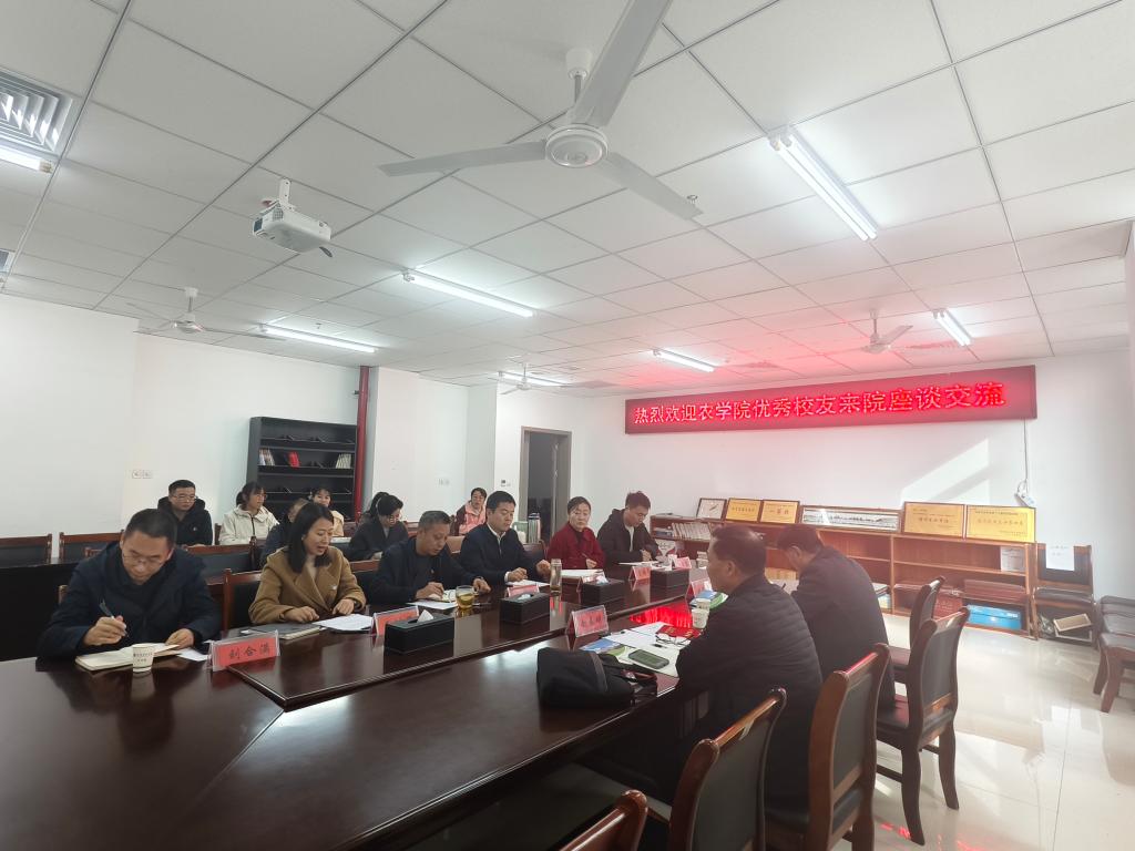2025年11月22日下午,农学院在3A105会议室举行了杰出校友座谈会。座谈会邀请农学院杰出校友、河南省秸牧机械有限公司总经理赵春明先生。农学院党委书记李传保、院长陈利军等学院领导及各教研室教师代表共同参会,会议由农学院党委副书记王付娟主持。