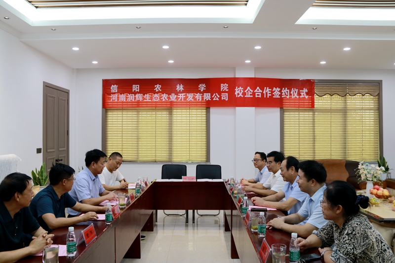 9月13日上午,beat365在线平台官网与河南润辉生态农业开发有限公司举行校企合作协议签约仪式。校长邢勇、信阳市平桥区邢集镇镇长李广斌,河南润辉生态农业开发有限公司董事长马晓辉参加签约仪式。仪式由信阳市平桥区农业农村局局长吴基主持。