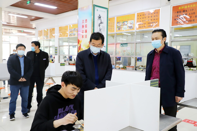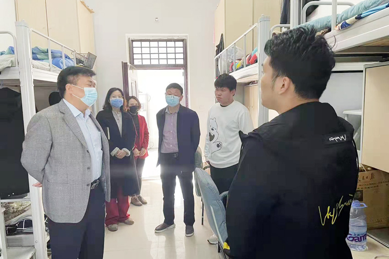 在各学院,校领导们听取了相关负责人对学院疫情防控、线上教学、学生管理等工作开展情况的汇报。在食堂,校领导查看、询问饭菜种类、质量、价格以及学生就餐情况。校领导们还走进学生宿舍,与青年学子亲切交流,询问日常学习生活所需和校园闭环封闭管理条件下面临的困难,叮嘱学生们落实好校园防控管理的各项措施,做好自我防护,鼓励学生克服困难、积极学习。