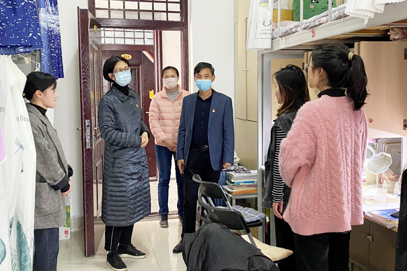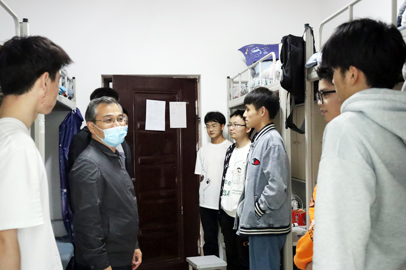 为加强常态化疫情防控工作,掌握师生实际工作学习情况,进一步落实“一线规则”,近日,党委书记余作斌、校长邢勇等校领导纷纷深入联系学院和学生班级、宿舍进行调研,检查指导师生办公、网课、生活情况,倾听师生切实需求。