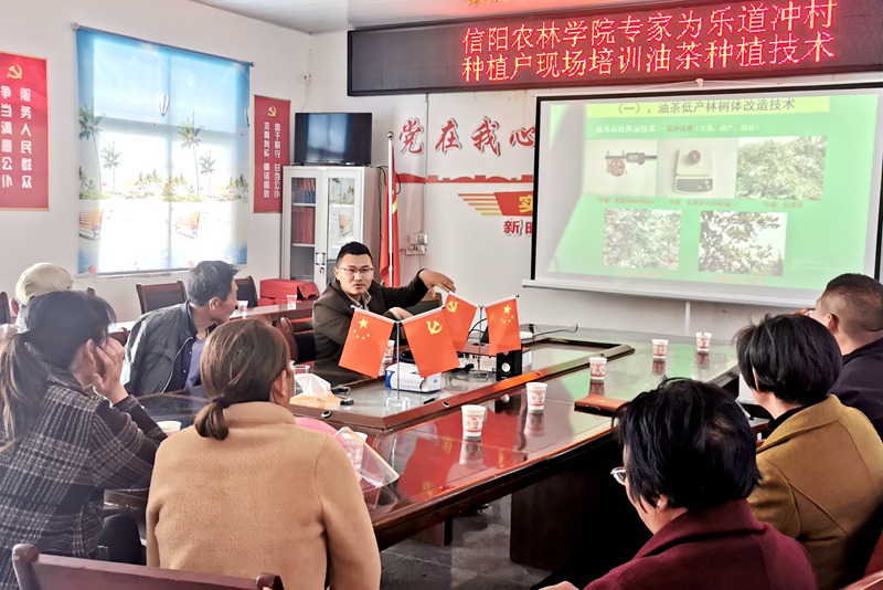 园艺学院张健老师为乐道冲村村民讲解油茶栽培相关技术知识。介绍了当前油茶产业发展的利好形势,从专业技术层面为村民普及了油茶品种的筛选和搭配、前期整地和施肥标准、日常管护和适时采收能技术,乐道冲村村干部表示希望以后能多一些这样的技术培训,增强村民种植油茶的信心,科学种植,助力乡村振兴,将油茶发展成乐道冲村的一道靓丽的风景线。