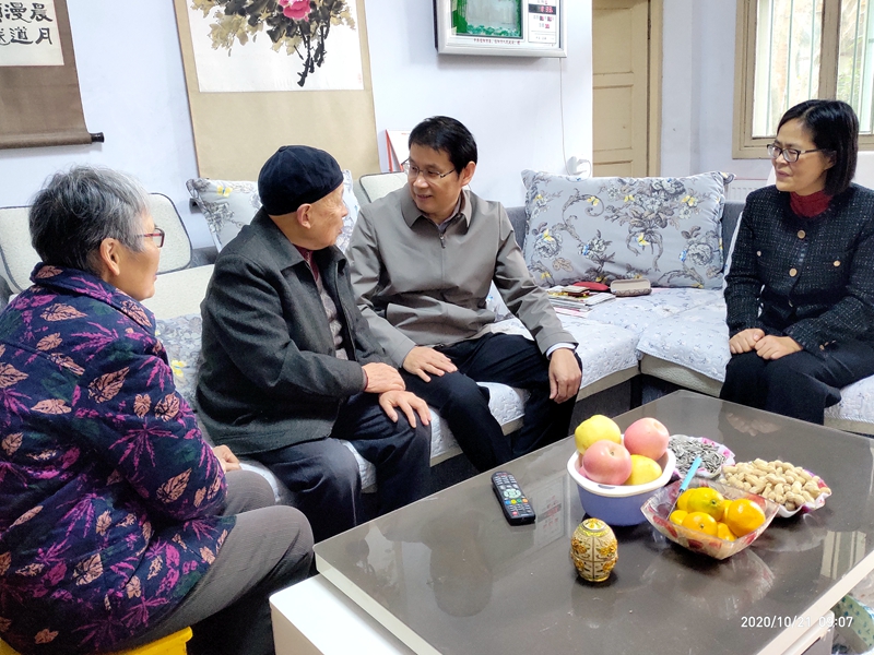 九九重阳节,浓浓敬老情。为传承和弘扬敬老、爱老、助老的中华民族优良传统,10月19日-21日,副校长赵聘带领离退休工作处相关同志看望慰问赵绍冉、王建邦、郑德海等离退休老同志。离退休职工党总支书记、离退工作处处长黄春晖、离退休职工党总支副书记陈立、赵培君参加了慰问。