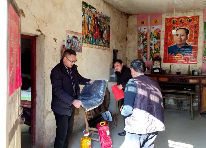 1月23日上午,校长郭长华、党委副书记刘光生带领帮扶责任人到固始县乐道冲村慰问贫困群众。