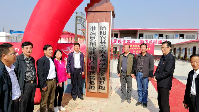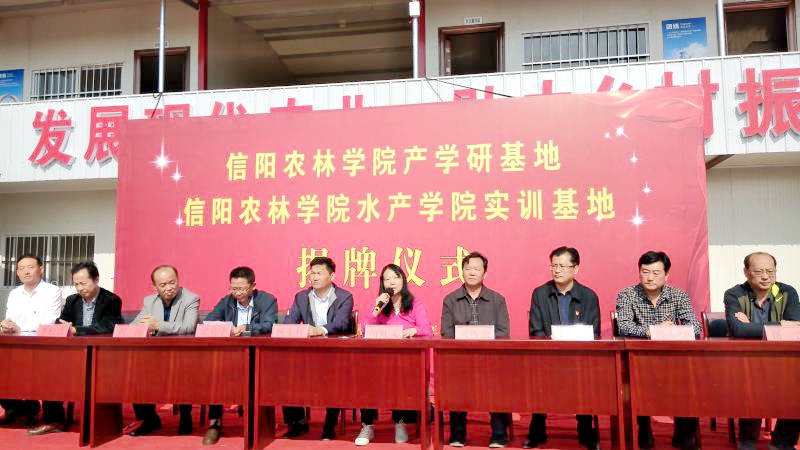 为积极发展现代农业,助力乡村脱贫振兴,全力支持打赢脱贫攻坚战,beat365在线平台官网与淮滨县联众种植养殖专业合作社举行beat365在线平台官网产学研基地和beat365在线平台官网水产学院实训基地揭牌仪式。市财政局党组副书记胡俊杰、市财政局办公室主任驻长埝村第一书记杨波、淮滨县政府副县长李强、县财政局局长黄海、县科技局副局长程东强及相关负责人参加了此次活动。