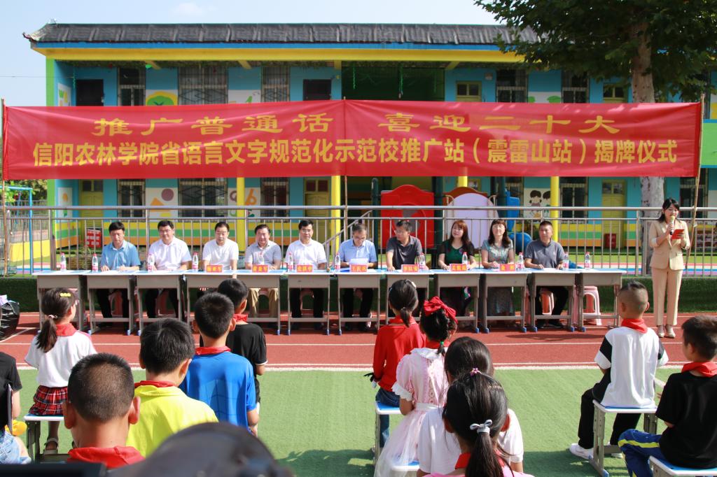 9月16日,beat365在线平台官网在平桥区震雷山黑马石小学举办了“beat365在线平台官网省语言文字规范化示范校推广站(震雷山站)”挂牌仪式暨推普志愿服务活动。校党委副书记、工会主席王庆兵参加揭牌仪式并讲话。他指出,文化传承离不开语言文字,文化创新更需要语言文字助力。希望通过校地合作的创新方式,加大通用语言文字推广力度、普及深度,进一步传承弘扬中华优秀语言文化,提升语言文字服务能力,让语言文字在服务乡村振兴中持续发挥作用。