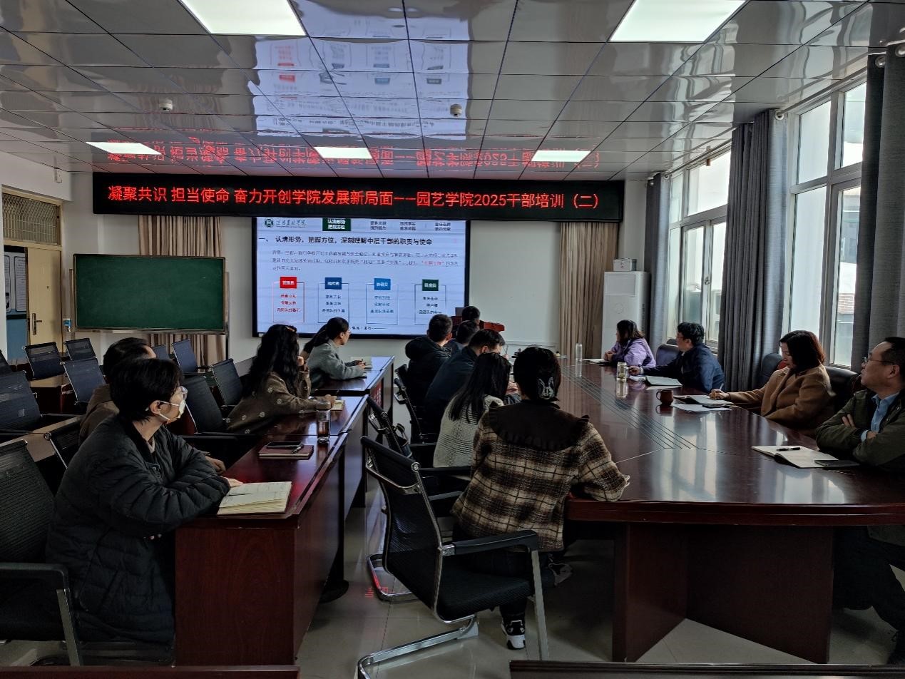 11月11日,园艺学院在2a322会议室开展2025年干部培训第二讲。培训由院长龚守富主讲,学院领导班子成员、科级干部参加培训。
