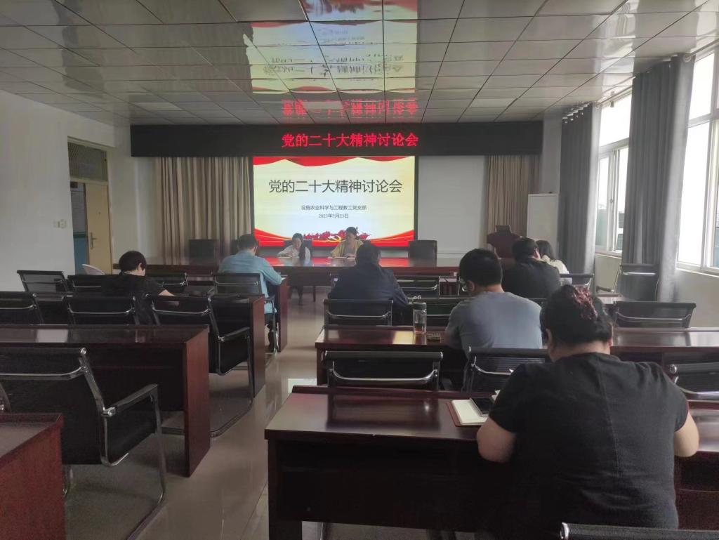 2023年5月23日下午,设施农业科学与工程教工党支部在2A322会议室开展“党的二十大精神讨论会”专题支部活动,全体党员同志参加。