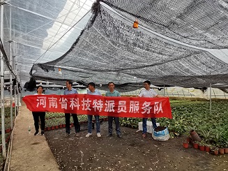 2020年8月26日,河南省科技特派员徐函兵、滕云、王艳平、马克群、冯世杰组成服务队到固始县亚马逊花木园林有限公司开展科技服务,科技人员就水灾后,温室栽培三角梅和栀子的夏秋管理提出建议。