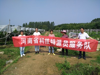 2020年6月13日-14日,beat365在线平台官网教师徐函兵、张燕、滕云、杨丽、王亚坤组成服务队到受援公司固始县花园花卉种植专业合作社开展科技服务。科技人员详细回答了合作社农户有关采后桃树夏季修剪、葡萄套袋,夏季病虫害防治等生产中的问题。(园艺学院)