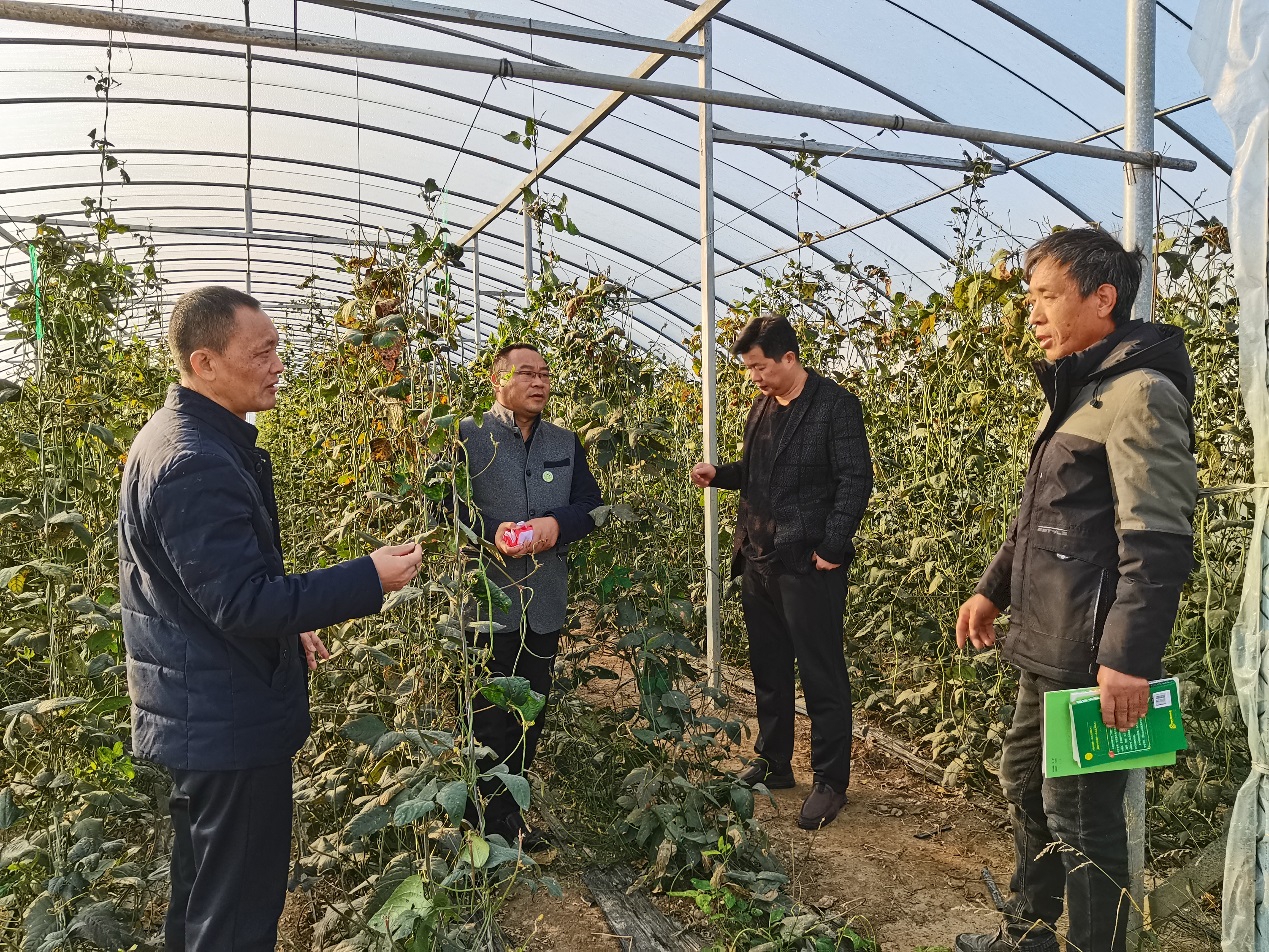 服务对一行对村里种植的豇豆、白菜及种植制度安排进行现场指导。指出一、在种植白菜时要注意深翻,多施有机肥,避免因土壤板结导致的白菜干烧心病;二是在青花菜、豇豆、黄瓜等蔬菜种植过程中要做好种植制度安排,避免因重茬导致作物病虫害加重;三是建议春季种植的西瓜、番茄、等采用嫁接育苗技术增强作物的抗逆性,提高经济效益。
