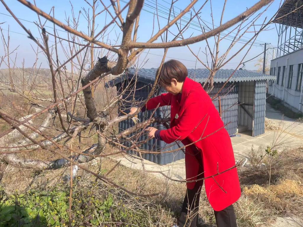 科技特派员查看了合作社的桃树生长情况,对桃树冬季修剪、病虫害防治、新技术应用等方面与企业负责人进行交流。针对树冠外移的桃树,科技特派员现场讲解并示范“回缩”修剪的方法达到更新复壮的目的,并一一解答负责人提出的问题。