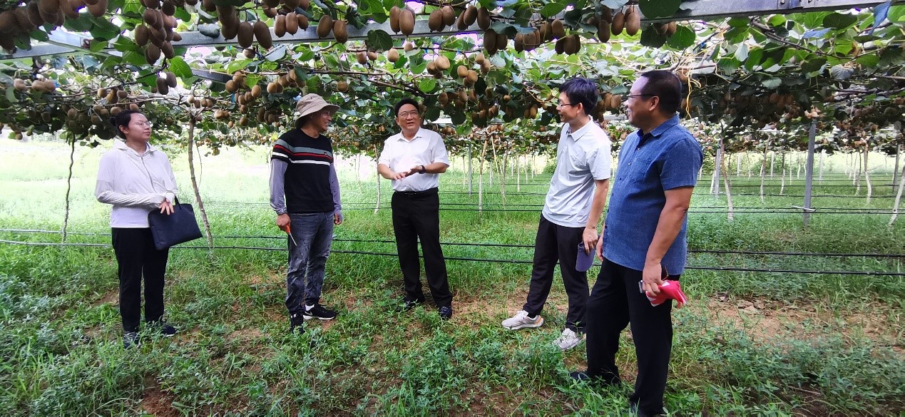 2024年7月24日,beat365在线平台官网园艺学院院长龚守富,副院长刘松虎、申君,专业教师张莹丽、李蒙、严露露、李亮杰、董向向、王昊、缪百灵、刘增兵共10位农业科技人员组成的科技服务队走进信阳市学堂岗村开展科技服务。在学堂岗村党支部书记叶调成和信阳市学堂岗绿色农业有限公司经理李家其陪同下,实地考察了猕猴桃园、桃园和设施草莓园,并针对果树的生长情况提出了相应的管理措施。