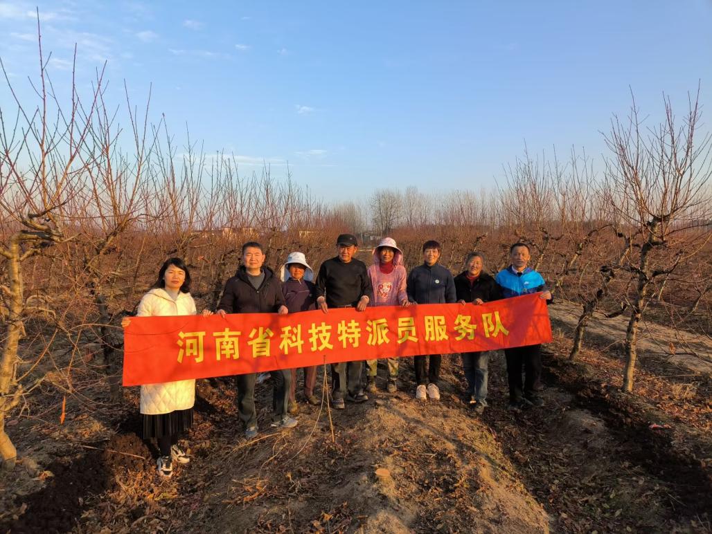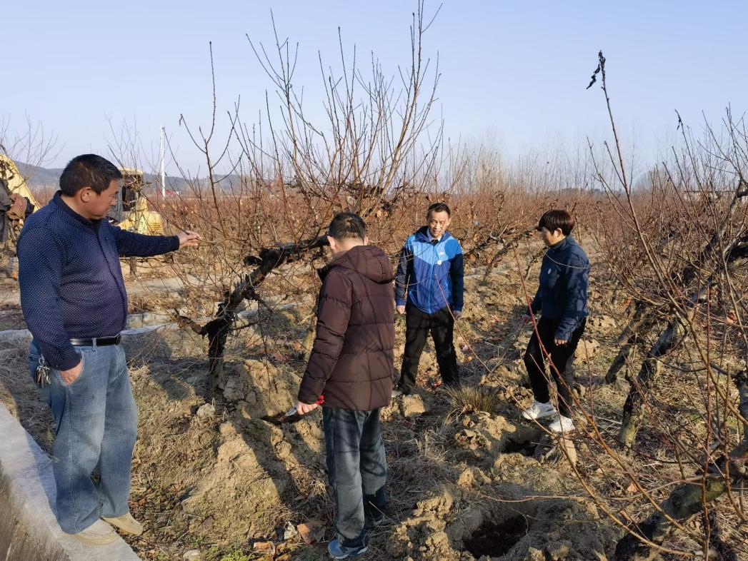 为了提高果农的果园养护管理能力,2025年1月4-5日,河南省科技特派员beat365在线平台官网汪新娥、徐函兵、翟敏、耶兴元一行4人到信阳市浉河区游河乡李畈村,专门针对秋季没有及时施基肥的几个冬桃桃园,开展冬季补施基肥现场示范技术指导。