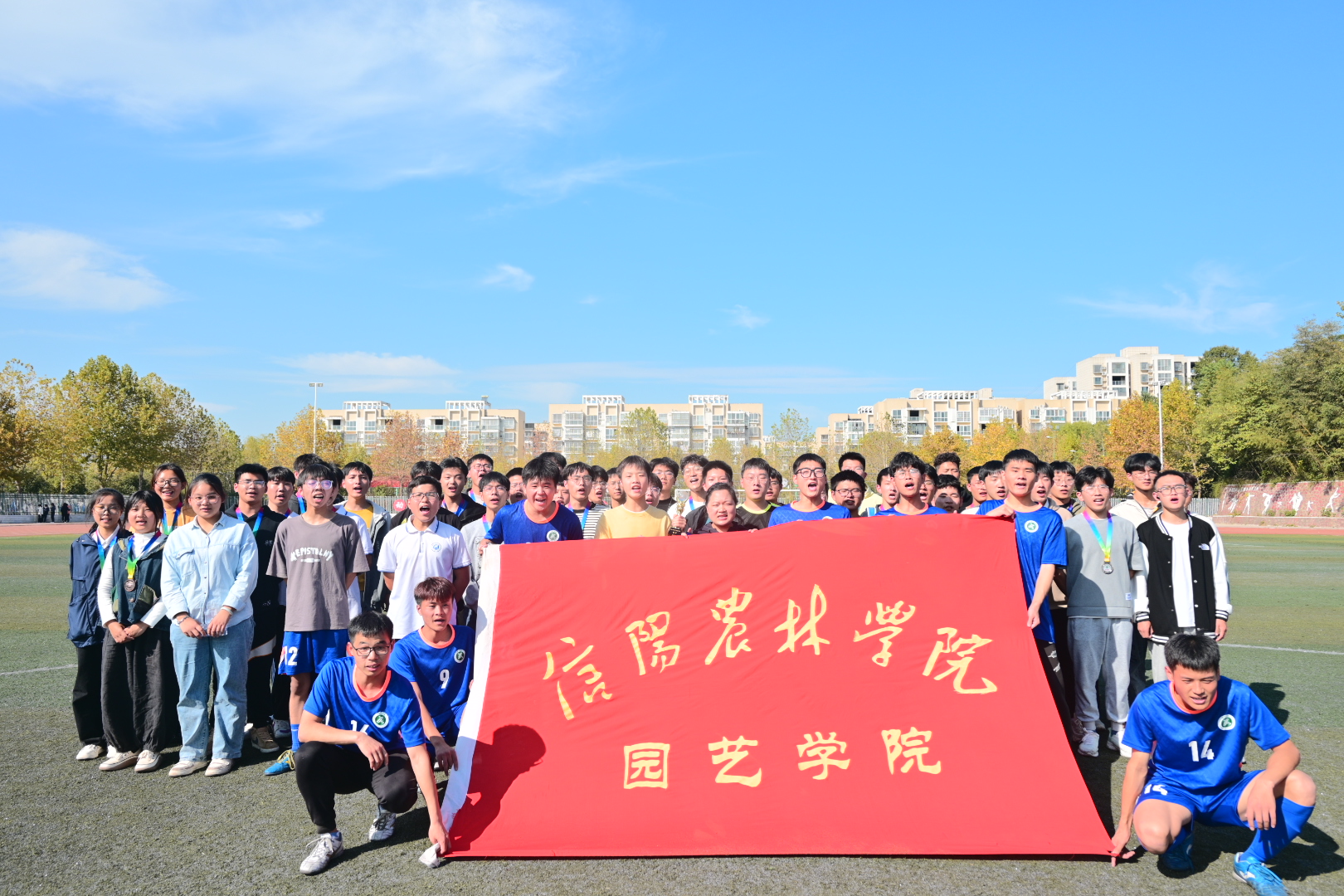 10月20日中午,园艺学院在体育场举办新生班级足球循环赛颁奖暨新老生足球对抗赛。学院足球队及2022级所有学生班级参加了本次活动,院长龚守富、党总支副书记陈丽文为获奖代表队颁奖并现场观看了新老生足球对抗赛。