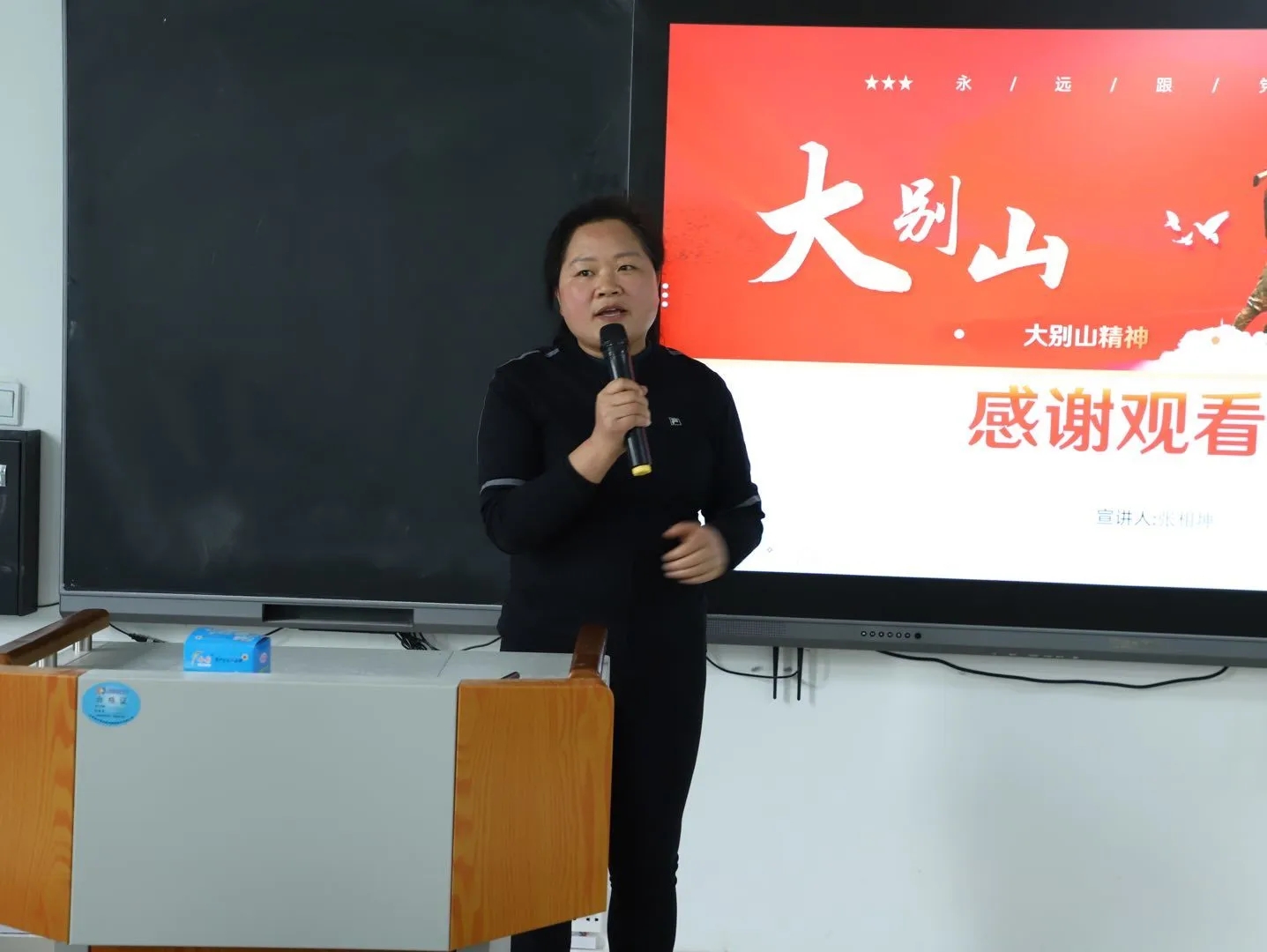 活动伊始,全体参会人员起立齐声高唱共和国国歌和共青团团歌后面向团旗一起重温入团宣誓誓词。大家高举右手,心潮澎湃,声音洪亮,宣誓结束后掌声雷动。团员代表刘志远和路静云分享了4月1日跟随班级到新县实地学习大别山精神的心得体会,自豪、激动的心情溢于言表,参观、鞠躬、献花、高唱“歌唱祖国”的兴奋劲儿至今萦绕在脑海,大别山精神永远激励大家努力学习,砥砺前行。张相坤进行了“学党史,弘扬大别山精神”宣讲,分别从大别山人民在大革命时期、土地革命时期、解放战争时期缔造的历史辉煌进行党史讲解,对“坚守信念、胸怀全局、团结奋进、勇当先锋”的大别山精神作了详细阐述。