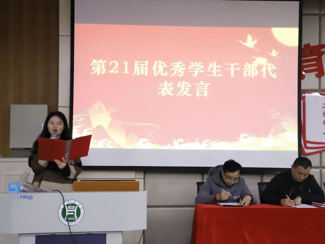 最后陈丽文做总结发言,肯定和赞扬了21届优秀学生干部,并对全体学生干部提出三点要求:一是牢记学生的天职是学习,兼顾学业的同时积极完成工作;二是分工明确,各部门协调配合,为师生排忧解难;三是提升个人能力,服务全院师生。春华秋实又一载,砥砺奋进续新篇,陈书记鼓励同学们有了21届学生干部优秀的榜样作用,22届的学生干部定会拿出逢山开路的冲劲和拼劲为促进我院的发展继续努力奋斗。(撰稿/王磊鹏 )