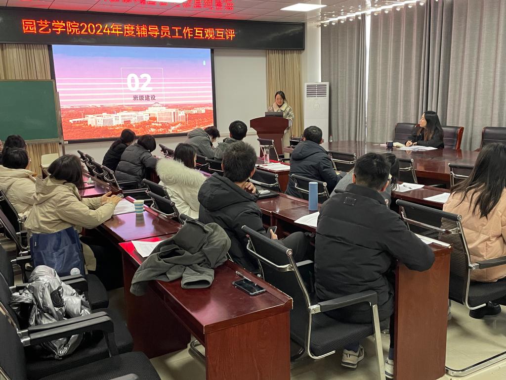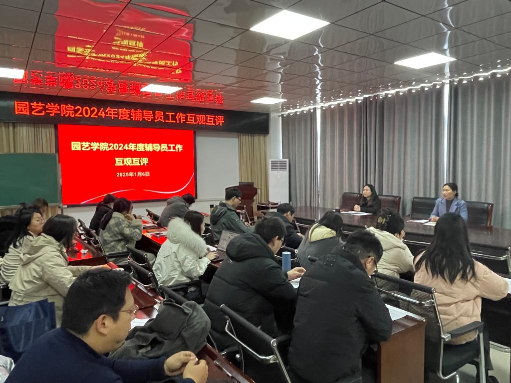 为切实加强我院辅导员队伍建设,推动学生思想政治工作高质量发展。2025年1月6日,园艺学院2024年度辅导员工作互观互评在2A-322会议室举行。园艺学院党委书记杜丽、党委副书记孙琳苒以及全体专兼职辅导员(班主任)参会,会议由党委副书记孙琳苒主持。