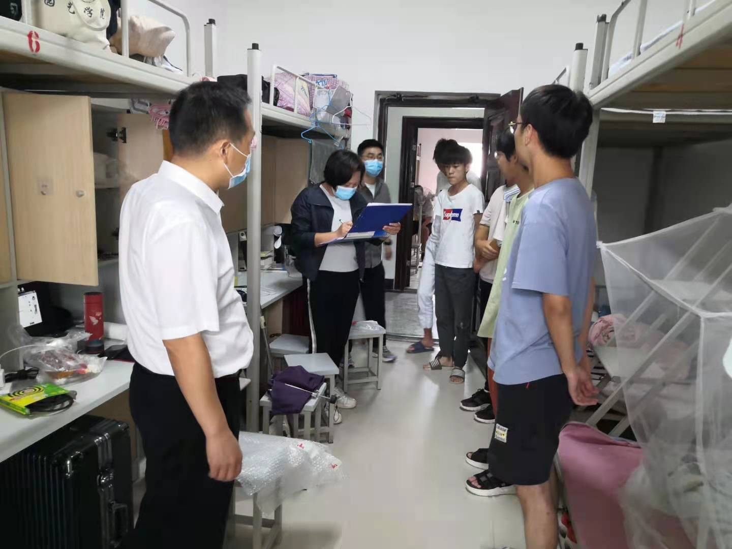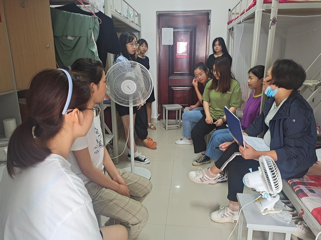 老师们走访到每一间学生公寓,逐个查看了学生暑期在校的住宿情况,询问生活、学习情况及是否有困难需要帮助解决。张祖成代表学院给同学们几点叮咛:一是要强化疫情意识,高度警惕,切记疫情防控无小事,要搞好个人卫生,不点外卖,不聚餐,不聚集;二是要服从管理,非必要不外出,保持信息通畅,及时和辅导保持沟通,有异常情况第一时间向学院报备;三是要珍惜学习机会,制定学习计划,高效利用好每一天时间,把有限的时间投入到无限的学习中去,争取2022年考研上岸,遇见更好的自己;四是要注意日常安全,校园建设工地多,校园日常生活中远离建筑工地,夜晚在校园行走结伴而行。
