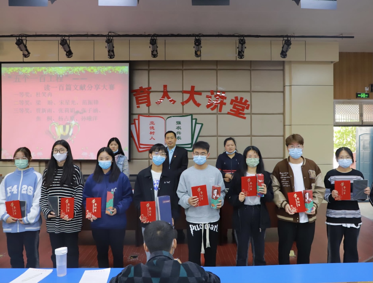 张祖成等现场抽查了“五个一百工程”记录本,陈娟娟宣读了“五个一百工程”2021-2022年度读文献分享大赛、写一百篇文稿大赛及识别植物大赛获奖名单,张祖成、陈丽文、陈娟娟为获奖学生颁奖,园艺20级孙飘然同学分享了参加“五个一百工程”项目的做法及收获,园艺20级齐家铭同学分享了参加“五个一百工程”项目中行一百次社会实践的体会,园艺21级杨占原分享了读一百篇文献的收获。