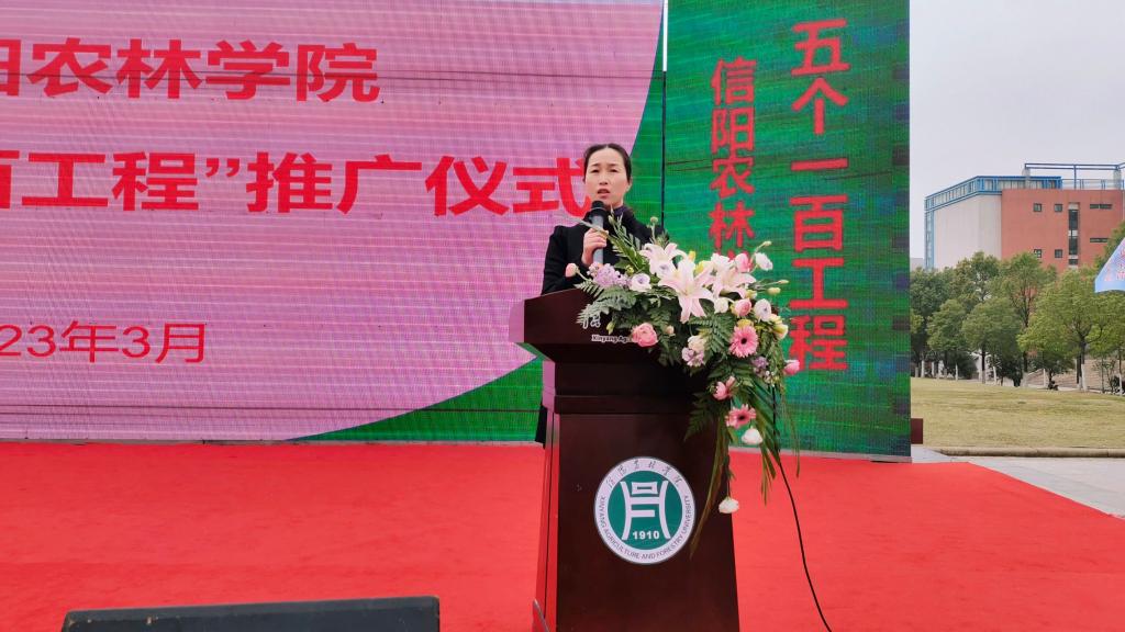 3月19日上午,beat365在线平台官网在汝宁广场举行“五个一百工程”推广仪式,后勤管理处处长张祖成、党委学工部副部长孙莉琴、农学院党总支副书记王付娟、茶学院党总支副书记朱建梅、旅游管理学学院党总支副书记杜丽、园艺学院党总支副书记陈丽文、团总支书记王磊鹏及各学院师生代表近600余人参加了推广仪式。