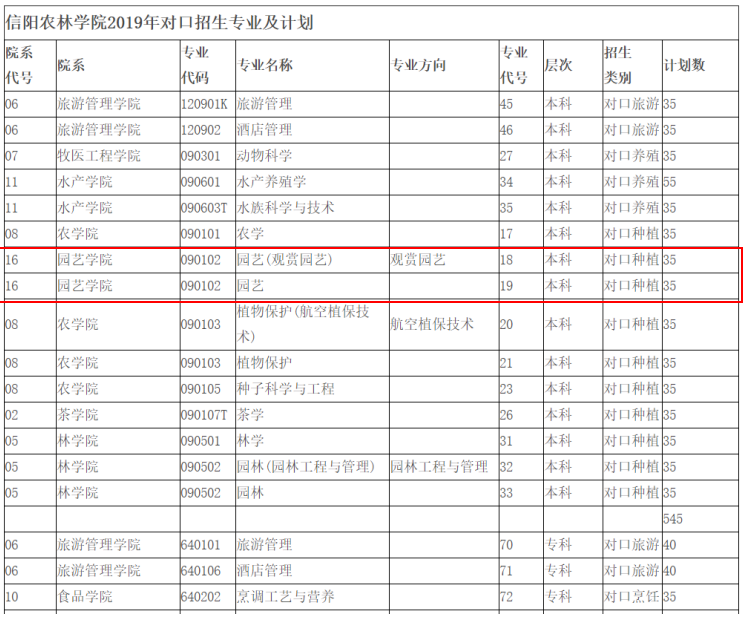 园艺学院2019年计划招收园艺专业本科生(对口种植)共70人。