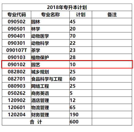 园艺学院2018年计划招园艺专业专升本学生10