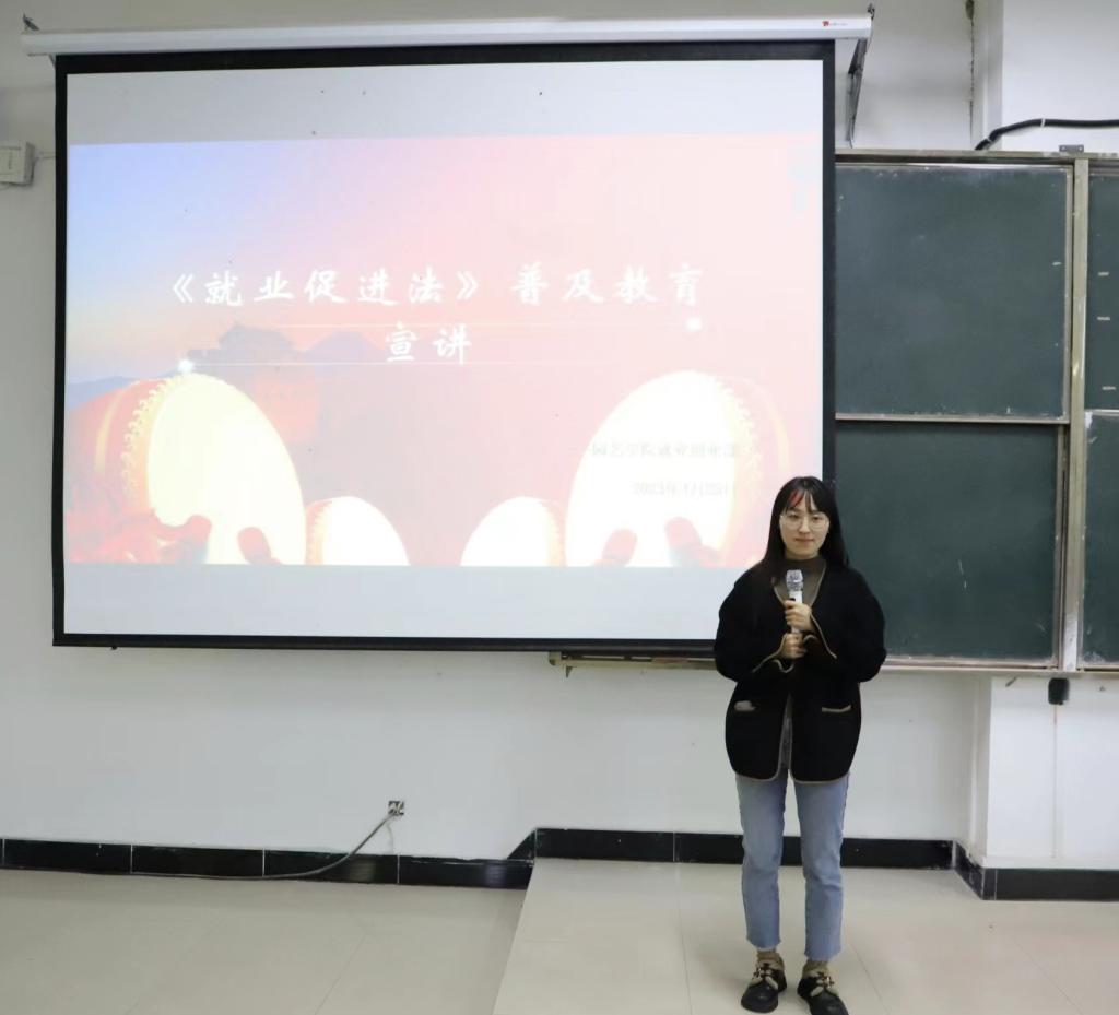 为了帮助我院毕业生了解政策、熟悉政策、用足用好政策,更好助力毕业生就业创业。2023年4月25日中午,园艺学院在1教E102举办《中华人民共和国就业促进法》普及教育宣讲活动。本次活动由就业创业专员缪百灵主讲,党总支副书记陈丽文,团总支书记王磊鹏,辅导员代表董向向以及学生会就业创业部门成员、各班班长、就业创业委员参加。